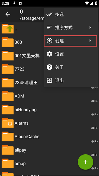 2、在“创建”子菜单中,点击“创建文件夹”。