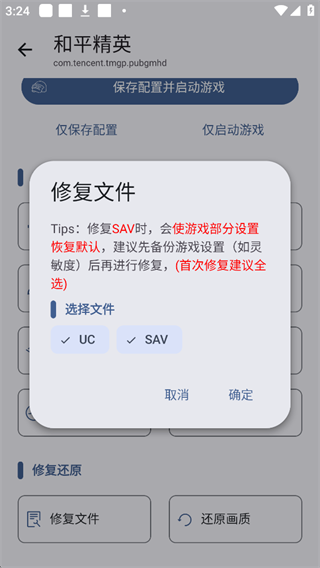 2、在弹出窗口中勾选所需修复的文件类型,点击“确定”即可完成修复操作,随后重新尝试启动游戏。